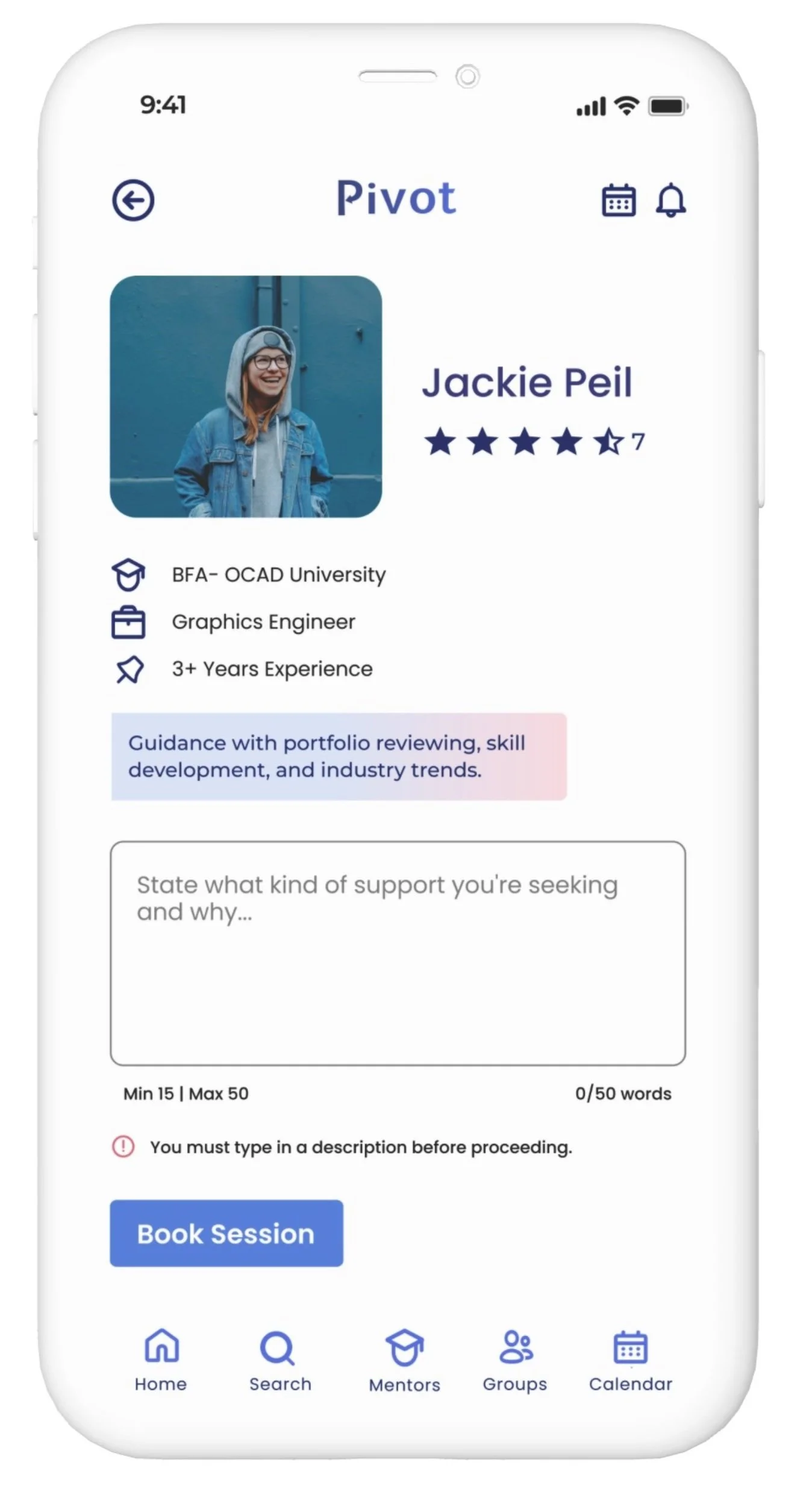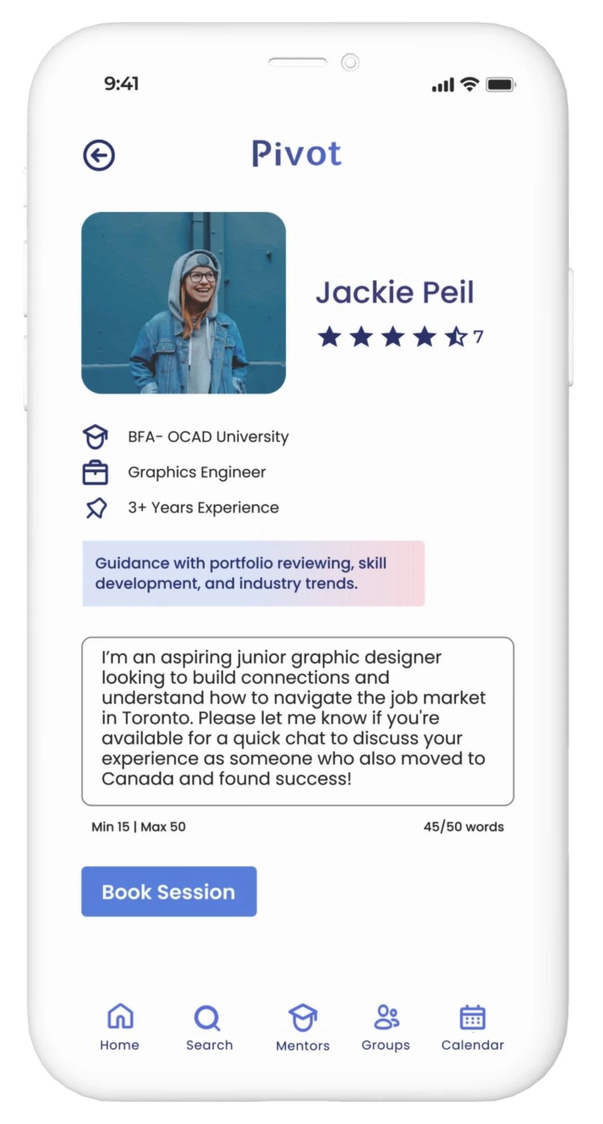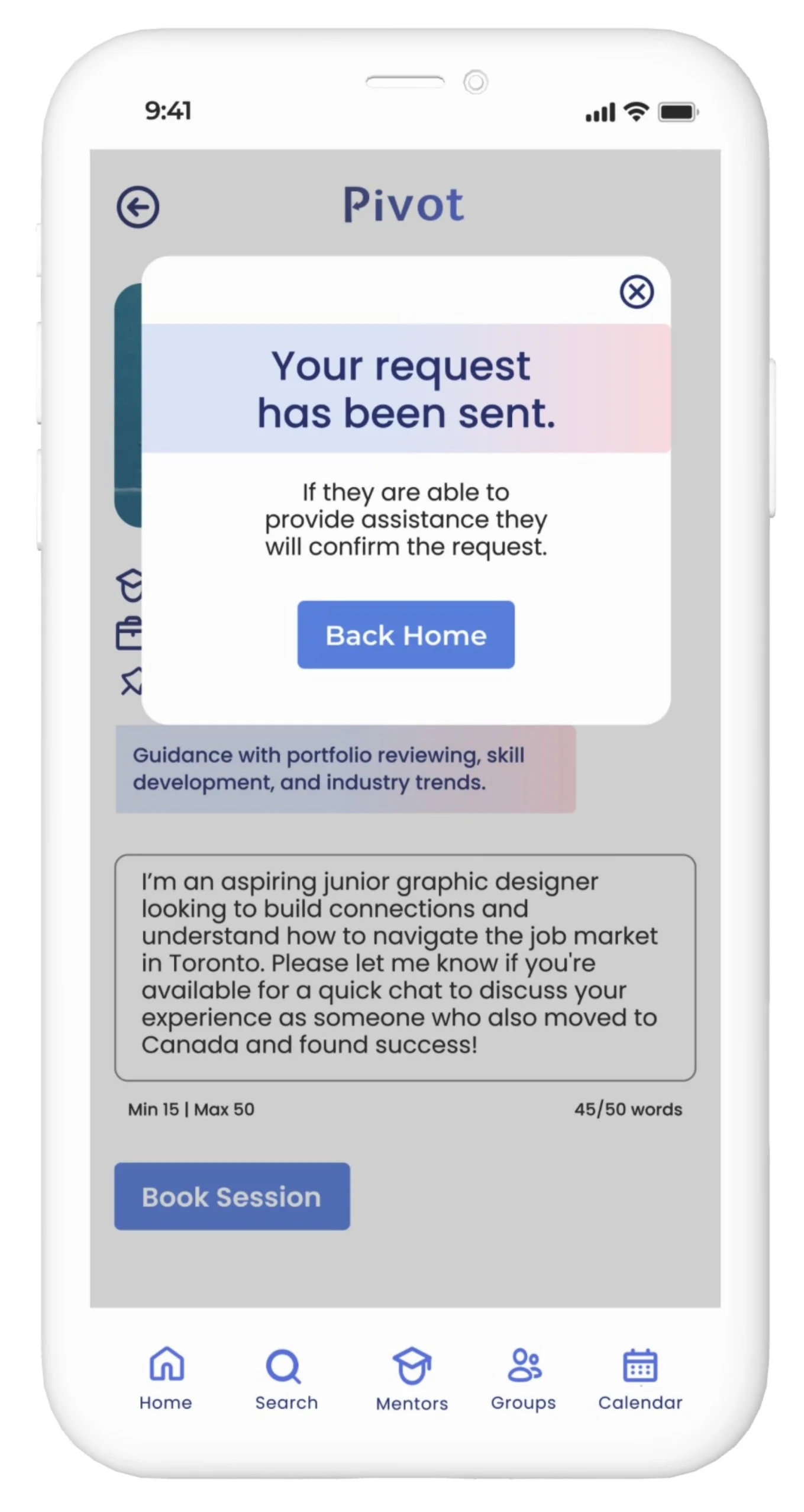 To streamline mentor connections, Pivot requires a brief message explaining your mentorship interest. We've implemented word count limits to ensure efficiency.