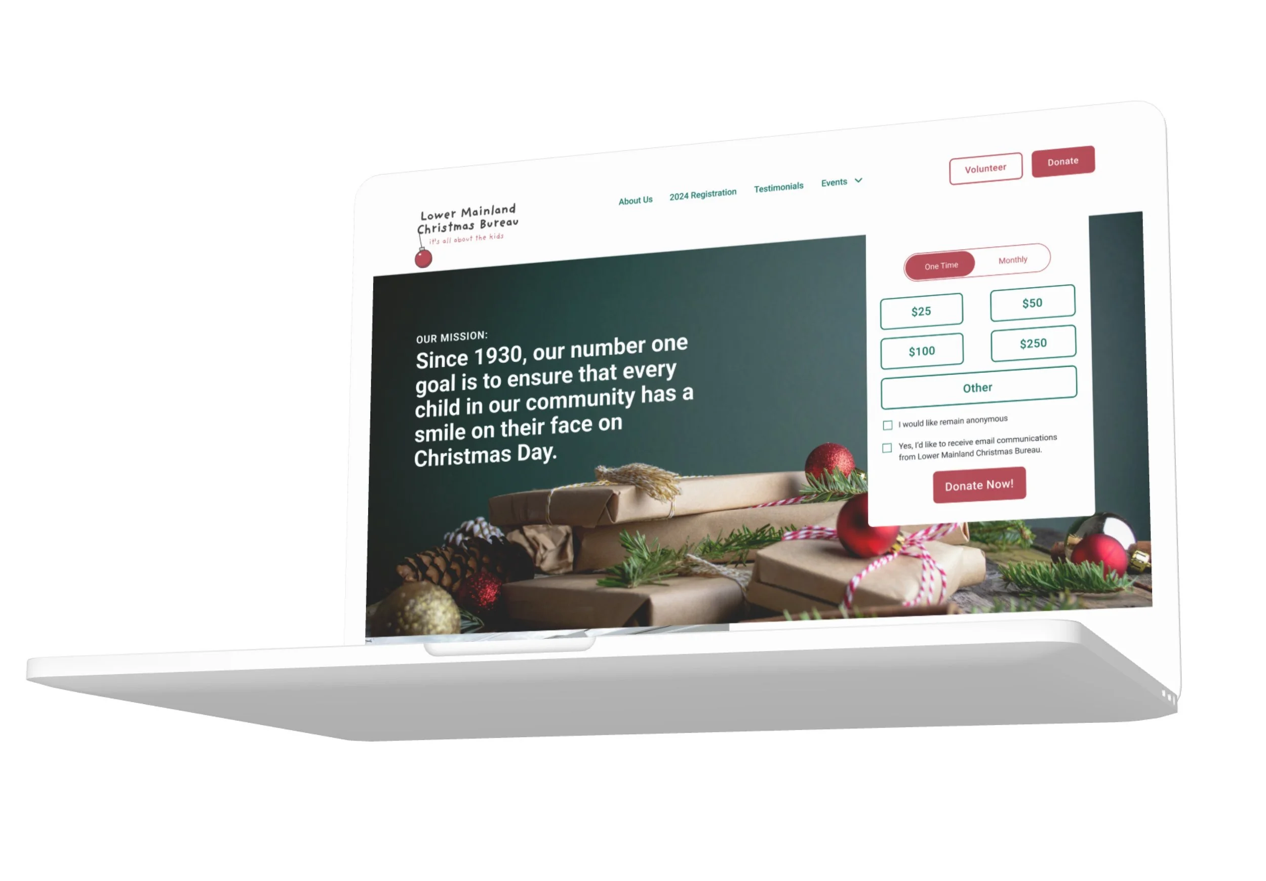 The redesign of the Lower Mainland Christmas Bureau provides an engaging NGO online identity with clear messaging and imagery to promote participation from it’s community.