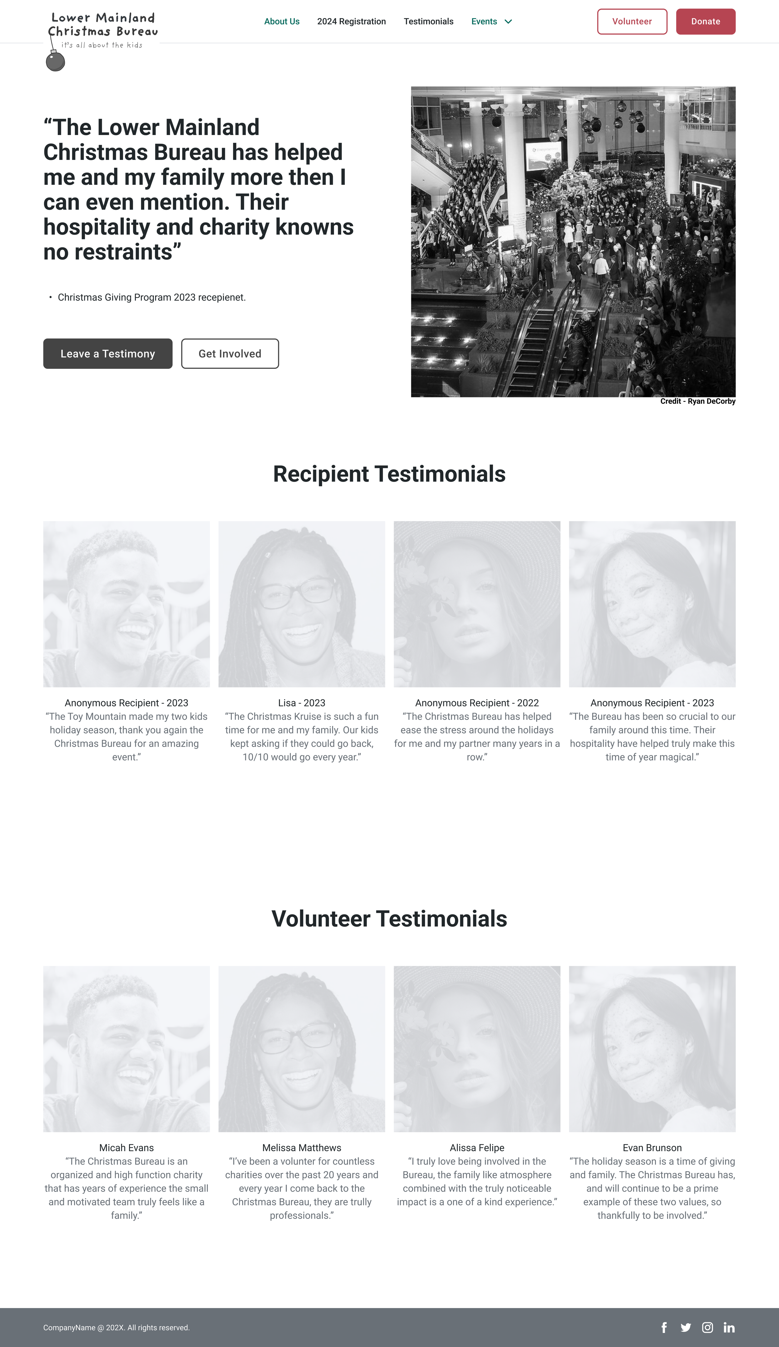 To make the organization more credible to online users, we created testimonial pages which would include images and quotes from past volunteers and recipients.